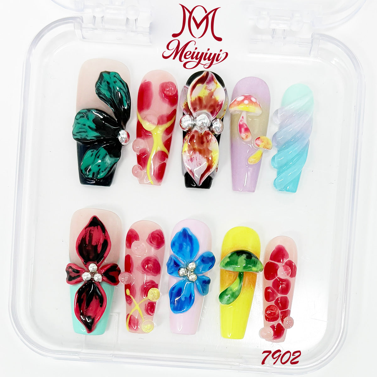 A collection of high-quality handcrafted nail tips with exquisite patterns and diverse color combinations.We also offer a four-piece set, which contains jelly glue.